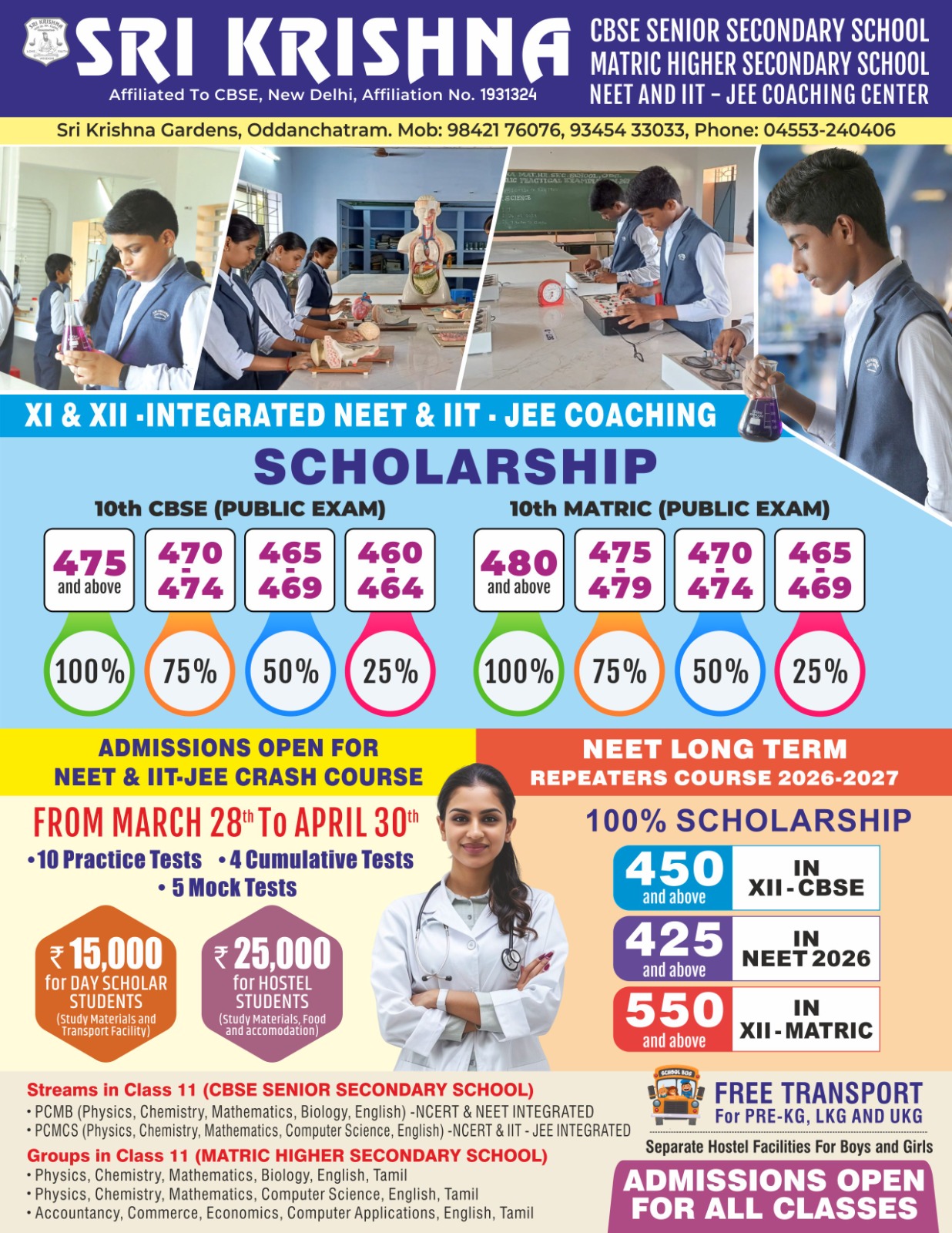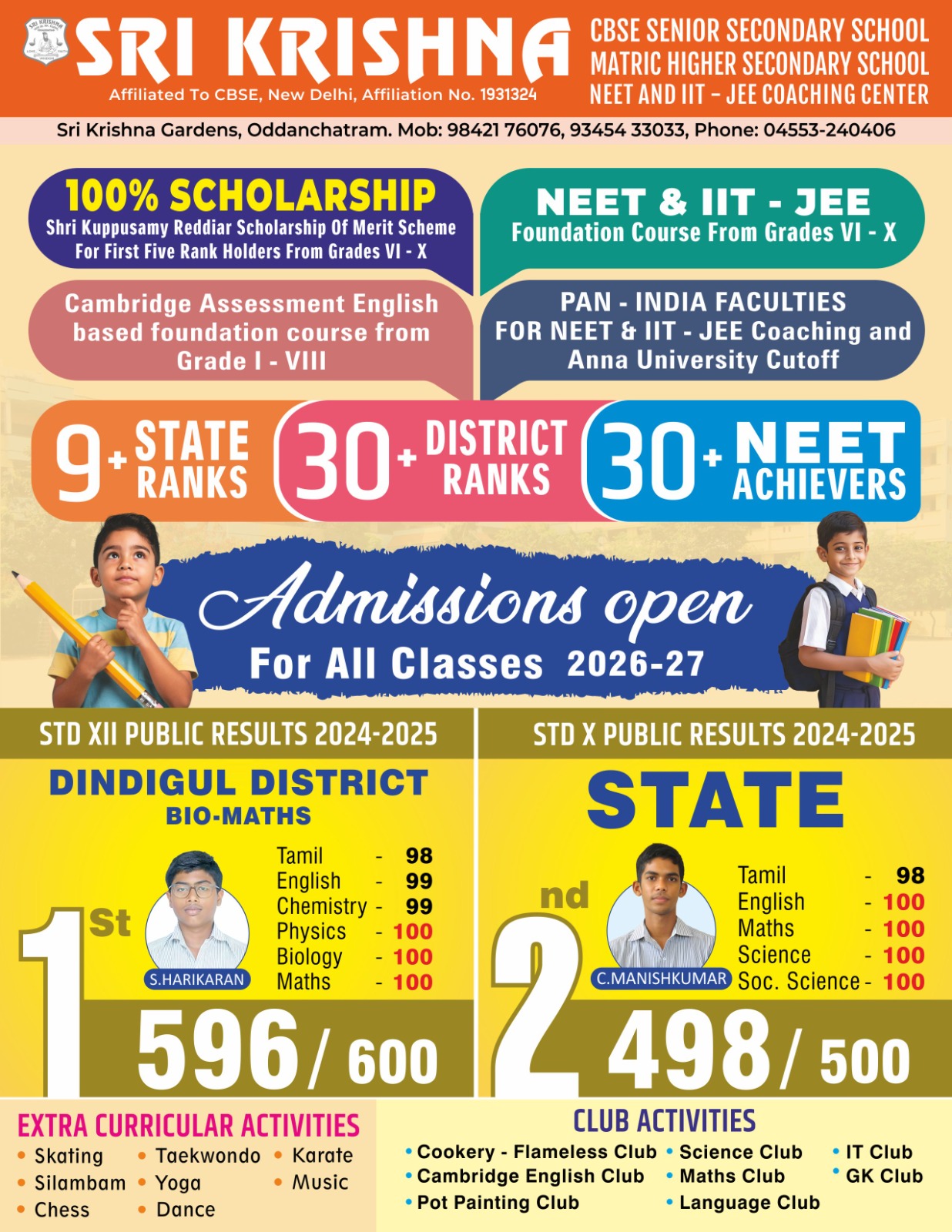 Success for all students is ensured at our school by the delivery of an enriching, child centered, balanced and structured curriculum and a whole school focus on student welfare that focuses on the positive recognition of student achievements. Sri Krishna CBSE Senior Secondary School gives much importance to imaginative and play way methods, especially in Kindergarten and Primary level.